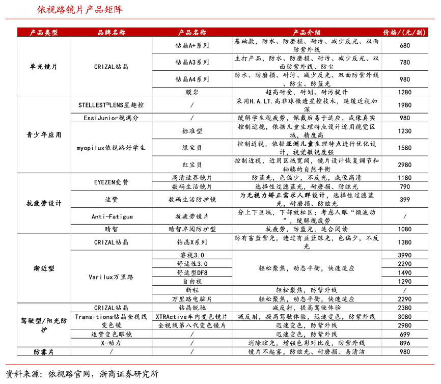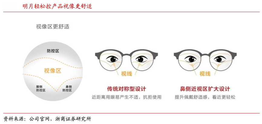經(jīng)典案例:根據(jù)公司官網(wǎng)、浙商證券研究所等綜合資訊表明,2021 年 7 月,明月鏡片公司聯(lián)合中國工程院莊松林院士團(tuán)隊共同推出采用周邊離焦技術(shù)的青少年近視防控鏡片“輕松控”,價格定位1598-2598元,2021年底,公司進(jìn)一步推出采用多點離焦技術(shù)的近視防控鏡片“輕松控Pro”,顯現(xiàn)出公司的研發(fā)和產(chǎn)品技術(shù)迭代能力,價格帶亦有上移(2298-2998元)。