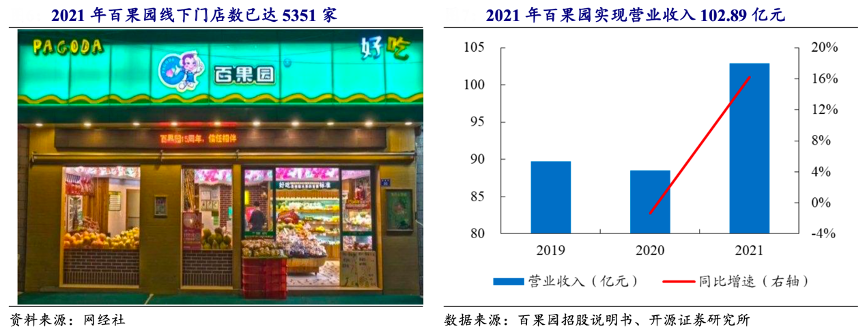 經(jīng)典案例:根據(jù)網(wǎng)經(jīng)社、百果園招股說明書、開源證券研究所等綜合資訊表明,百果園是我國領先的水果新零售企 業(yè),擁有業(yè)內(nèi)最大的水果分銷網(wǎng)絡,截至 2021 年底線下門店數(shù)量達 5351 家,遍布我國 22 個省和超過 130 個城市;2021 年實現(xiàn)營業(yè)收入 102.89 億元,其中 99.92 億元 為以水果為主的生鮮銷售業(yè)務,實現(xiàn)歸母凈利潤 2.35 億元。