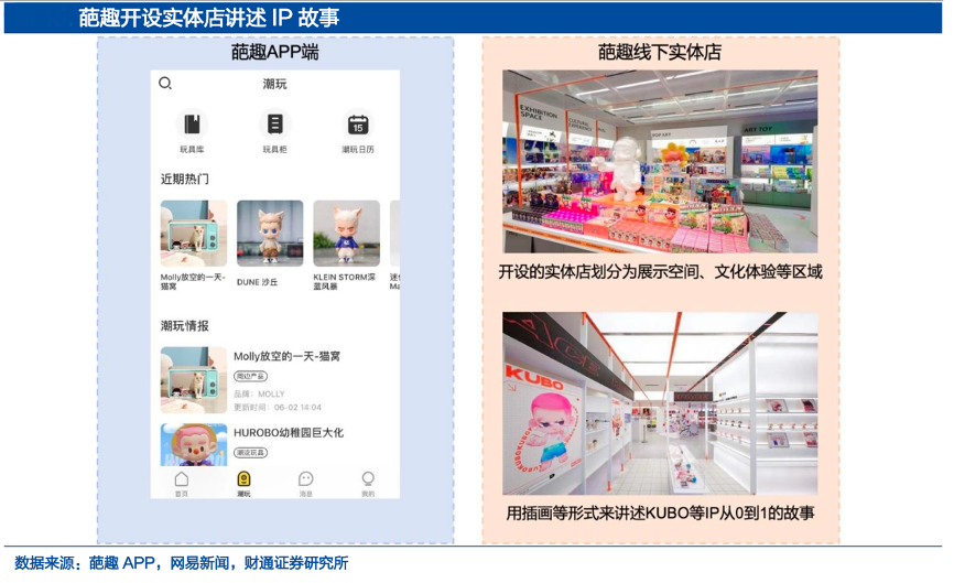 經(jīng)典案例:根據(jù)葩趣APP、網(wǎng)易新聞、財(cái)通證券研究所等綜合資訊表明,葩趣于 2022 年 1 月 在上海徐匯美羅城開設(shè)葩趣旗艦店,增加 IP 的曝光后再依托泡泡瑪特的供應(yīng)鏈,打造 IP 衍生品,最后在葩趣線下門店、小程序以及天貓旗艦店等渠道售賣,建立完整的 IP 打造鏈條。目前,葩趣已經(jīng)簽約 KUBO 和焦綠貓兩大 IP,并擁有眾多粉絲。其中 KUBO 被稱為 2021 年潮玩的最大黑馬,在小紅書上有超 8000 篇相關(guān)筆記內(nèi)容。
