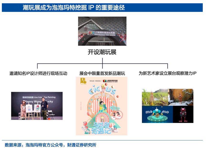 經(jīng)典案例:根據(jù)泡泡瑪特官方公眾號(hào)、財(cái)通證券研究所等綜合資訊表明,泡泡瑪特公司近年來(lái)開設(shè)北京潮玩展與上海潮玩展,邀請(qǐng)還未出名的設(shè)計(jì)師參展,幫助其定制一批產(chǎn)品并建立展臺(tái)。潮玩展每次持續(xù) 2 至 3 天,以2019 年 STS 上海國(guó)際潮流玩具展為例,時(shí)長(zhǎng) 3 天的 STS 吸引 10 萬(wàn)人次游客觀展。以觀展人次為基數(shù),公司在展會(huì)期間觀察各個(gè)設(shè)計(jì)師展臺(tái)的客流量,篩選出吸引較多游客的展臺(tái),并與設(shè)計(jì)師進(jìn)行簽約。