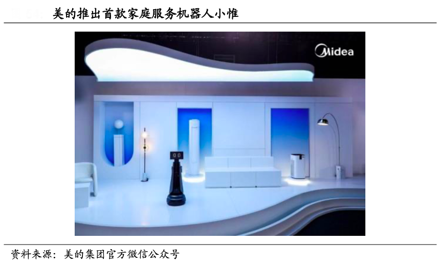經(jīng)典案例:根據(jù)美的集團(tuán)官方微信公眾號、國海證券研究部等綜合資訊表明,通過 AI、IoT 等技術(shù)的廣泛應(yīng)用,能夠增強家電產(chǎn)品間、家電與使用者間的交互,實現(xiàn)自主決策、遠(yuǎn)程控制等功能,滿足消費者日益多樣的個 性化需求。例如美的推出的首個家庭服務(wù)機(jī)器人“小 惟”能夠聯(lián)動各種智能家電提供主動服務(wù),覆蓋飲食、會客、生活照料、情感陪伴等各類生活場景,宛如家庭的新成員。