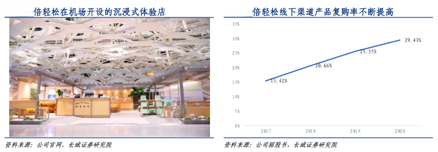 經(jīng)典案例:根據(jù)公司官網(wǎng)、公司招股書、長城證券研究院等綜合資訊表明,多年來,倍輕松公司試圖將直營門店打造成用戶在繁忙的都市生活中的一個療愈間,能夠為年輕白領(lǐng)提供按摩服務(wù),還會提供茶水、點心等附加服務(wù)。并且有的機場門店還會以旅途卡等方式吸引消費者進店免費體驗,同時還能享受免費的線下店員普及健康的知識宣導(dǎo)等咨詢服務(wù)。2017 至 2020 年的短短三年間,公司的復(fù)購率提升近 14 個百分點。
