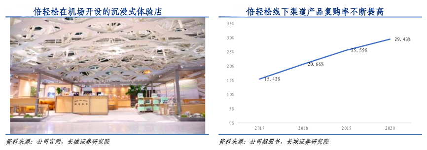 經(jīng)典案例:根據(jù)公司官網(wǎng)、公司招股書、長城證券研究院等綜合資訊表明,多年來,倍輕松公司試圖將直營門店打造成用戶在繁忙的都市生活中的一個療愈間,能夠為年輕白領(lǐng)提供按摩服務(wù),還會提供茶水、點心等附加服務(wù)。并且有的機場門店還會以旅途卡等方式吸引消費者進(jìn)店免費體驗,同時還能享受免費的線下店員普及健康的知識宣導(dǎo)等咨詢服務(wù)。2017 至 2020 年的短短三年間,公司的復(fù)購率提升近 14 個百分點。