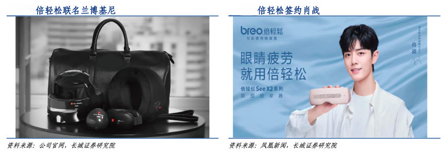 經(jīng)典案例:根據(jù)公司官網(wǎng)、鳳凰新聞、長(zhǎng)城證券研究院等綜合資訊表明,2021 年 5 月 31 日,倍輕松公司宣布明星肖戰(zhàn)成為其首位全球品牌代言人,在微博、朋友圈、抖音多媒體組合曝光,第一條預(yù)告微博半小時(shí)內(nèi)點(diǎn)贊 破20 萬(wàn),官宣微博點(diǎn)贊量突破 215 萬(wàn)。相關(guān)微博話題沖上熱搜,閱讀量突破 13 億。除 了曝光效果,倍輕松的點(diǎn)擊互動(dòng)率達(dá)到行業(yè)均值的 10 倍之多。