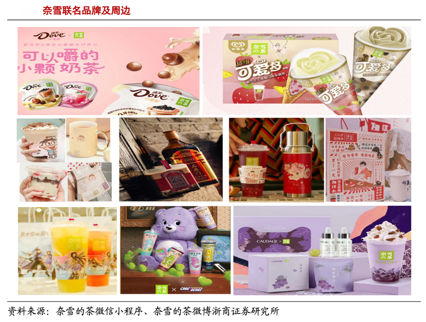 經(jīng)典案例:根據(jù)奈雪的茶微信小程序、奈雪的茶微博、浙商證券研究所等綜合資訊表明,奈雪已與人民日報、王者榮耀、杯子美術(shù)館、亞朵、 旺旺等 30 家多行業(yè)多品牌進(jìn)行聯(lián)名。例如 2019 年 9 月,奈雪的茶聯(lián)名人民日報新媒體開 展“有為青年看包喝茶”活動,開設(shè)線下快閃店還原“爺爺喝的茶”、“爸爸喝的茶”、“我 喝的茶”三個不同年代的喝茶場景。