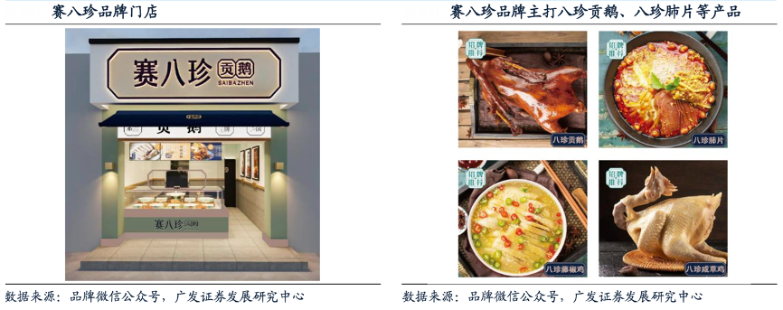 經(jīng)典案例:根據(jù)品牌微信公眾號(hào)、廣發(fā)證券發(fā)展研究中心等綜合資訊表明,賽八珍同樣為佐餐鹵制品品牌,核心產(chǎn)品為八珍貢鵝、八珍肺片等,主打低價(jià)格、嚴(yán)品控,與紫燕主品牌在口味和價(jià)格定位上形成差異化。根據(jù)招股說(shuō)明書和人民網(wǎng)資訊,截止2021年公司共開(kāi)設(shè)4家賽八珍品牌直營(yíng) 店,加盟店分布在江浙滬及武漢、太原、鹽城等十余個(gè)城市。