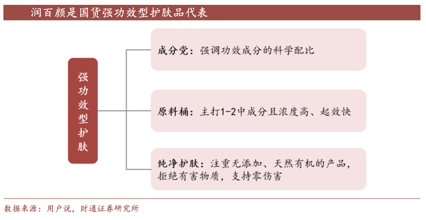 經(jīng)典案例:根據(jù)用戶說、財通證券研究所等綜合資訊表明,主打單一成分的強功效護膚產(chǎn)品市場規(guī)模預計從2019 年的 120 億元提升至 2024 年的 362 億 元。在玻尿酸高熱度的背景下,潤百顏以“玻尿酸”為核心,搭配二裂酵母等網(wǎng)紅產(chǎn) 品構(gòu)建強功效護膚產(chǎn)品,以“玻尿酸大廠”研發(fā)實力背書,迅速占領消費者心智。