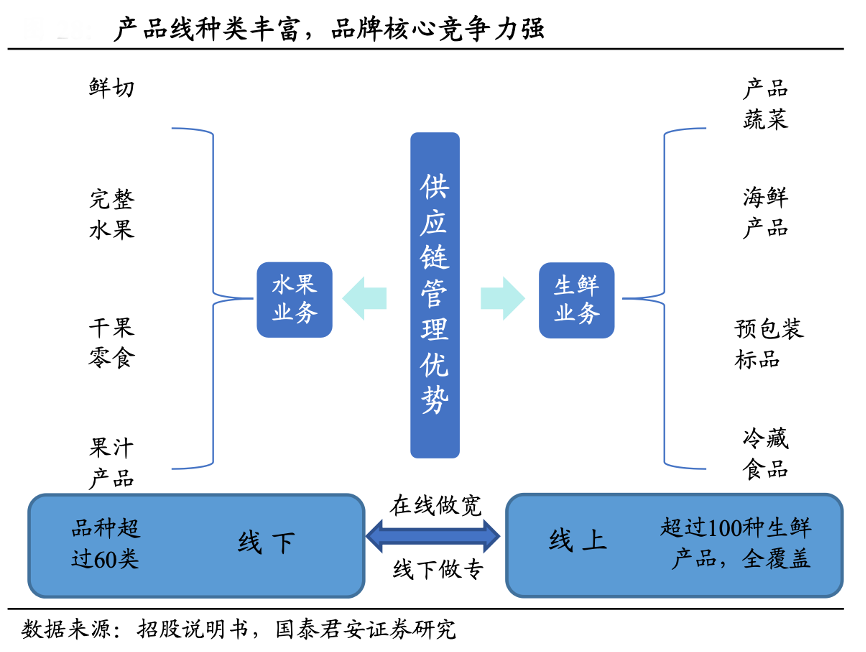 經(jīng)典案例:根據(jù)招股說明書、公司官網(wǎng)、國泰君安證券研究等綜合資訊表明,百果園考慮到蔬菜與水果特性相近,供應(yīng)鏈管理及運營的相似性及重合度;通過復(fù)制在水果領(lǐng)域的成功經(jīng)驗,百果園憑借產(chǎn)業(yè)優(yōu)勢及在上游種植的豐富經(jīng)驗,不斷完善、整合蔬果類供應(yīng)鏈體系,建立各大生鮮產(chǎn)品品類的生產(chǎn)、銷售與品控標準,持續(xù)拓展了大生鮮業(yè)務(wù)。