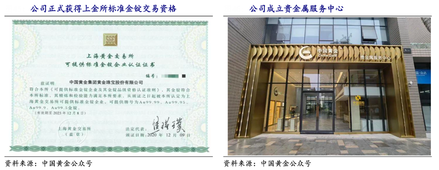 經(jīng)典案例:根據(jù)中國黃金公眾號(hào)、開源證券研究所等綜合資訊表明, 2020 年 12 月,中國黃金公司正式獲得上海黃金交易所標(biāo)準(zhǔn)金錠交易資格, 中金精煉的產(chǎn)品順利通過上海黃金交易所驗(yàn)收。此外,中國黃金加速布局線上、線 下黃金回購渠道,夯實(shí)貴金屬回購產(chǎn)業(yè)鏈。2021年9月,中國黃金于深圳設(shè)立貴金 屬服務(wù)中心、成立線上“中國黃金回收平臺(tái)”小程序,2022 年 2 月于昆明設(shè)立中國 黃金昆明貴金屬回購店,2022 年 5 月又于廣東東莞、番禺分別設(shè)立貴金屬服務(wù)中心。