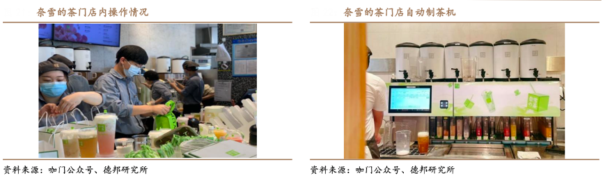 經(jīng)典案例:根據(jù)咖門公眾號(hào)、德邦研究所等綜合資訊表明,奈雪的茶截止 2022 年三季度,門店自動(dòng)制茶系統(tǒng)已經(jīng)基本鋪設(shè)完畢,后續(xù)奶蓋機(jī)、茶湯均質(zhì)器等更多自動(dòng)化設(shè)備在持續(xù)推進(jìn)中。系統(tǒng)一大優(yōu)點(diǎn)是縮短制茶時(shí)間,部分取代制茶人員,壓縮用人成本。自動(dòng)制茶機(jī)能夠使 得單人每小時(shí)產(chǎn)能提升 40%,單店制茶員工人數(shù)需求量從4-5 人,精簡(jiǎn)至 2-3 人。
