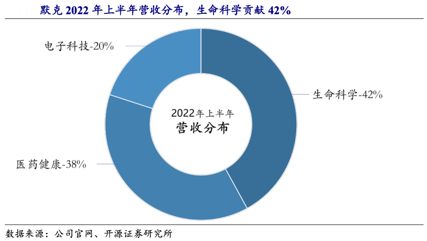 經(jīng)典案例:根據(jù)公司官網(wǎng)、開源證券研究所等綜合資訊表明,默克 2022 年半年報數(shù)據(jù)顯示,生命科學(xué)、醫(yī)藥健康、電子科技業(yè)務(wù)對于營業(yè)收入的貢獻分別為 42%、38%和 20%。