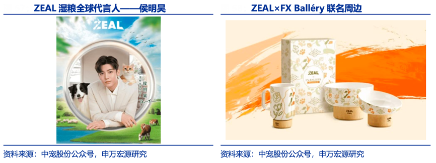 經(jīng)典案例:根據(jù)中寵股份公眾號、申萬宏源研究等綜合資訊表明,2021 年,在新品 ZEAL 0 號罐推出之際,中寵公司官宣侯明昊為 ZEAL 濕糧全球代言人,開展線上線下全方位營銷活動,打造“自然本真”的品牌標簽;