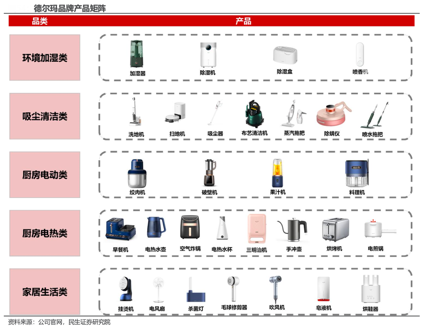 經(jīng)典案例:根據(jù)公司官網(wǎng)、民生證券研究院等綜合資訊表明,德爾瑪品牌主要覆蓋吸塵清潔類、加濕環(huán)境類以及家居廚房類等家居環(huán)境類產(chǎn)品,其中吸塵清潔是核心,重點(diǎn)品類包括洗地機(jī)和吸塵器等。2018年以來,吸塵清潔類產(chǎn)品快速放量,2022年?duì)I收高達(dá) 10.6 億元。