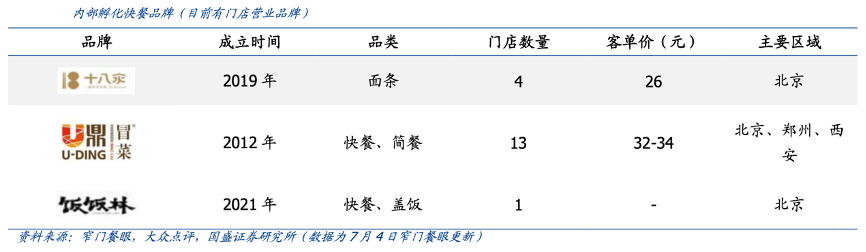 經(jīng)典案例:根據(jù)窄門餐眼、大眾點評、國盛證券研究所等綜合資訊表明,海底撈近些年陸續(xù)收購餐飲品牌并自行孵化部分品牌,也是布局零售的一種方式。海底撈主要通過內(nèi)部孵化品牌橫向延申,目前已孵化品牌有 U 鼎冒菜、十八汆、撈派有面兒等;外部收購品牌有漢舍中國菜、Hao Noodle 等。孵化品牌大多數(shù)是客單價 20-30 元的快餐,可復制性強、投入低。