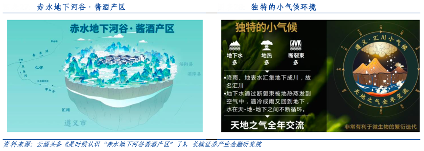 經(jīng)典案例:根據(jù)云酒頭條、長(zhǎng)城證券產(chǎn)業(yè)金融研究院等綜合資訊表明,貴州珍酒釀酒水源,便取自石子鋪赤水地下河谷上游水。不僅水質(zhì)優(yōu)于地表水,純凈而甘洌,還有硬度低、微量元素豐富等特點(diǎn)。從小環(huán)境看,匯川區(qū)周圍豐富的地下水在地?zé)嶙饔孟峦ㄟ^斷裂束蒸發(fā)到空氣中,遇冷成雨又回到地下,循環(huán)往復(fù)形成天地之氣全年交流的“遵義匯川小氣候”,讓釀酒微生 物繁衍迭代的質(zhì)量和時(shí)間比其它地方更好更長(zhǎng)。