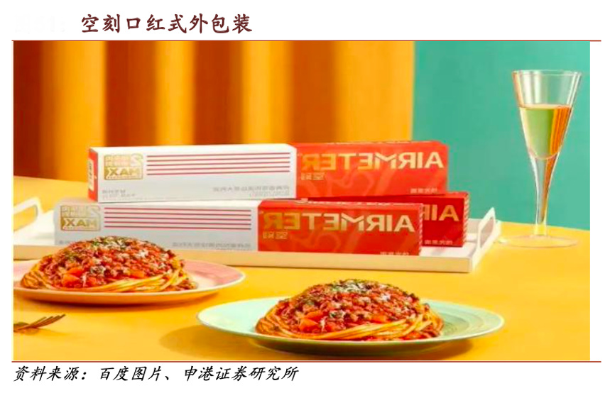 經(jīng)典案例:根據(jù)百度圖片、申港證券研究所等綜合資訊表明,空刻意面考慮到目標用戶大部分是女性,大膽地選擇將包裝設(shè)計成化妝品風格。顏色明亮的色塊、代表意面的抽象條紋,加上醒目的 Logo,這個靈感取自于口紅的包裝,形成了獨一無二的“空刻風”。此外,空刻意面創(chuàng)新設(shè)計了抽屜盒子的包裝,增加消費者使用過程中的儀式感和驚喜感。