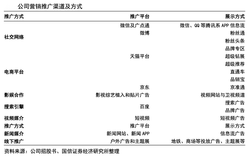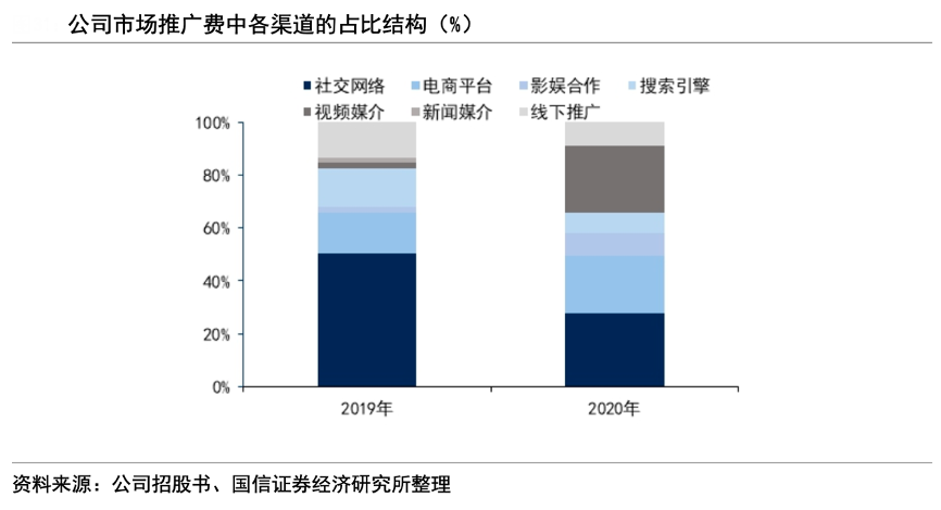 經(jīng)典案例:根據(jù)公司招股書、國信證券經(jīng)濟(jì)研究所等綜合資訊表明,迪阿股份公司積極把握短視頻風(fēng)口,加大了在抖音、快手等短視頻渠道的投入,2020 年視頻媒介推廣費投入大幅增長 990.53%,投入占比從 2019 年的僅2.29%大幅提升至 25.16%。
