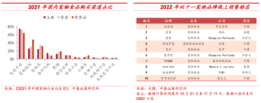 經(jīng)典案例:根據(jù)《2021年中國(guó)寵物行業(yè)白皮書(shū)》、天貓、中泰證券研究所等綜合資訊表明,伴隨電商行業(yè)的快速發(fā)展,線上渠道成為國(guó)內(nèi)寵物食品發(fā)展的重要平臺(tái),根據(jù)《2021 年中國(guó)寵物行業(yè)白皮書(shū)》,2021年寵物食品購(gòu)買(mǎi)渠道中,電商占比超過(guò)70%,國(guó)產(chǎn)品牌相較海外企業(yè)對(duì)國(guó)內(nèi)消費(fèi)者的感知力更強(qiáng)。