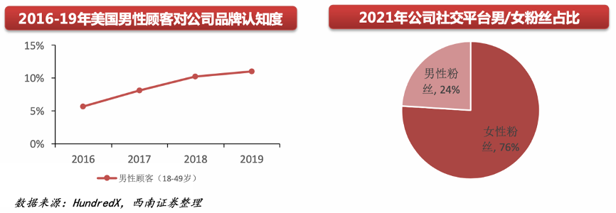 經(jīng)典案例:根據(jù)HundredX、西南證券等綜合資訊表明,結(jié)合美國(guó)咨詢公司HundredX對(duì)Lululemon美 國(guó)消費(fèi)者市場(chǎng)調(diào)查發(fā)現(xiàn),Lululemon 男性消費(fèi)者的 數(shù)量占比在逐步增長(zhǎng),從2021年1月的14.8%提升至同年11月的19.7%。其中,有越來越多的男性消 費(fèi)者會(huì)因?yàn)長(zhǎng)ululemon的剪裁、舒適度、時(shí)尚度購(gòu) 買產(chǎn)品。同時(shí)年齡段在18-49歲的男性消費(fèi)者對(duì)Lululemon名牌的認(rèn)知度也有了較高的提升。