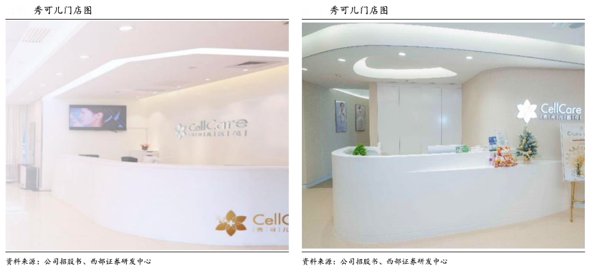 經(jīng)典案例:根據(jù)公司招股書、西部證券研發(fā)中心等綜合資訊表明,美麗田園公司醫(yī)療美容服務(wù)主要集中在非外科手術(shù)項(xiàng)目,主要包括能量?jī)x器服務(wù)與注射服務(wù)。秀可兒主要在全國(guó)一二線城市的地標(biāo)性商業(yè)中心布局,定位高品質(zhì)醫(yī)美服務(wù)。秀可兒門店在條件允許情況下,還會(huì)提供重瞼手術(shù)、抽脂手術(shù)、脂肪填充手術(shù)等手術(shù)類醫(yī)療美容服務(wù)。目前該門店服務(wù)涵蓋超 300 個(gè) SKU,能夠提供 10 類能量?jī)x器與注射服務(wù),為客戶提供正規(guī)、安全、專業(yè)的產(chǎn)品與服務(wù)。
