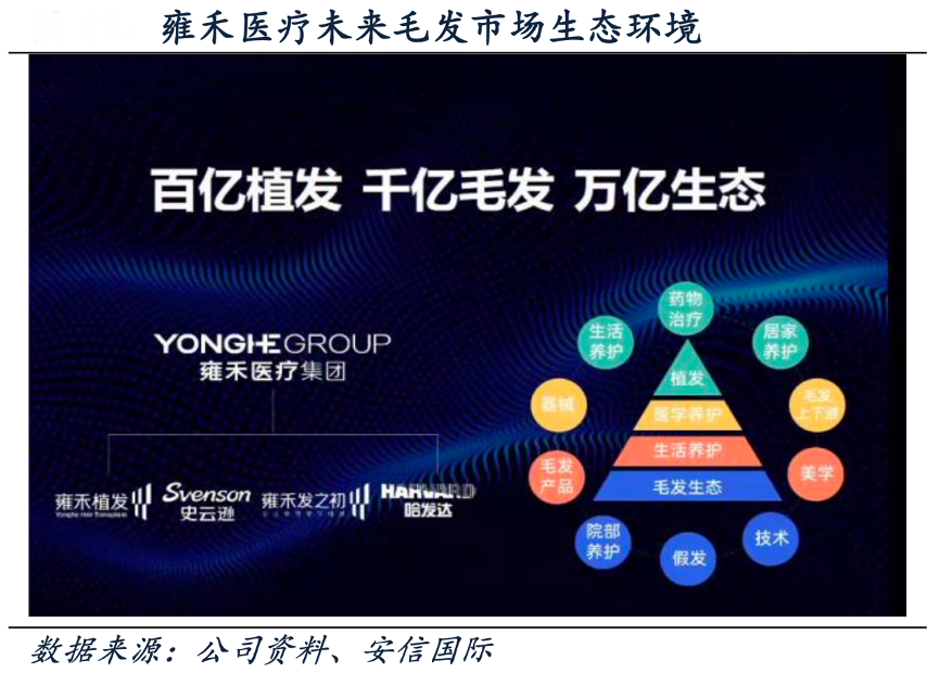 經(jīng)典案例:根據(jù)公司資料、安信國(guó)際等綜合資訊表明,雍禾醫(yī)療公司主打“雍禾植發(fā)+史云遜+雍禾發(fā)之初+哈發(fā)達(dá)”四大品牌,打造全方位一站式毛發(fā)醫(yī)療 服務(wù)行業(yè)領(lǐng)先地位。其中,雍禾植發(fā)品牌以做植發(fā)手術(shù)為主,近幾年接受公司植發(fā)手術(shù)的患者人數(shù)快速增長(zhǎng),從 2018 年的 3.5 萬人增長(zhǎng)至 2021 年的 5.8 萬人,CAGR 達(dá) 18.45%; 史云遜主營(yíng)業(yè)務(wù)為醫(yī)療養(yǎng)固服務(wù)。
