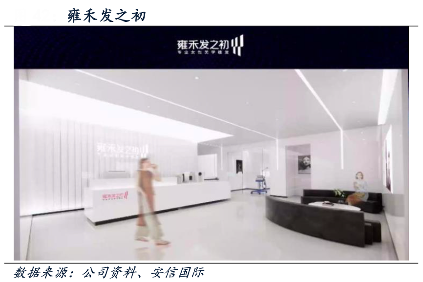 經(jīng)典案例:根據(jù)公司資料、安信國(guó)際等綜合資訊表明,“女性+美學(xué)”是雍禾發(fā)之初品牌的兩個(gè)關(guān)鍵詞,該品牌于2021 年底推出并專注于女性植發(fā),創(chuàng)新構(gòu)建女性美學(xué)毛發(fā)診療體系,提供包括坐位取發(fā)應(yīng)用、長(zhǎng)發(fā)取發(fā)、長(zhǎng)發(fā)種植、舒 適化植發(fā)臨床應(yīng)用等服務(wù)。