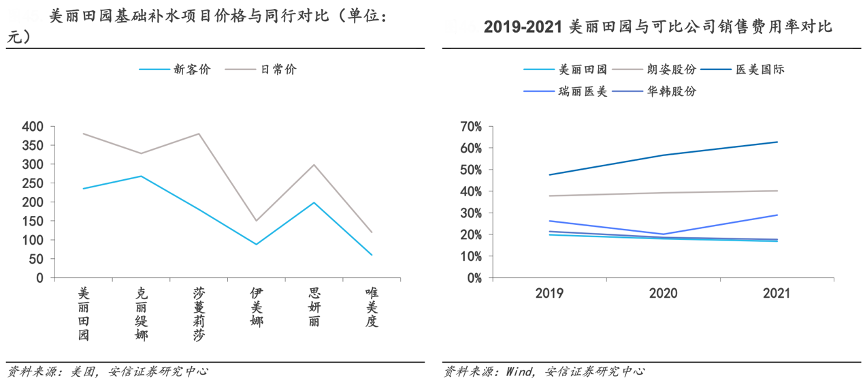 經(jīng)典案例:根據(jù)美團、wind、安信證券研究中心等綜合資訊表明,美麗田園通過高質(zhì)量服務,獲得高溢價,實現(xiàn)口碑營銷,降低獲客成本。相比于市場上多數(shù)打價格戰(zhàn)的美容機構,美麗田園通過高品質(zhì)的服務,走高端美容院路線,享有一定程度的溢價。