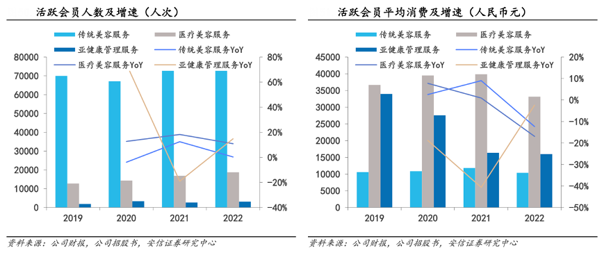 經(jīng)典案例:根據(jù)公司財(cái)報(bào)、公司招股書、安信證券研究中心等綜合資訊表明,美麗田園通過高品質(zhì)的服務(wù)和較強(qiáng)的客戶管理能力,擁有了龐大的高粘性會(huì)員。根據(jù)招股書披露,公司的客戶到店次數(shù)由 2019 年的 81.9 萬次增長到 2022 年的 94.7 萬次,年復(fù)合增長率 5%。 2022 年直營店整體活躍會(huì)員達(dá) 7.8 萬名,平均到店次數(shù) 9.5 次,平均消費(fèi) 1.9 萬元,2022 年 活躍會(huì)員復(fù)購率達(dá) 83.2%。