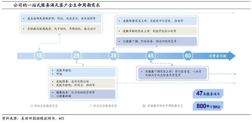 經(jīng)典案例:根據(jù)美麗田園招股說明書、HTI等綜合資訊表明,美麗田園公司首先通過傳統(tǒng)美容服務(wù)初步贏得客戶信任,進而延伸至醫(yī)療美容服務(wù)及亞健康評估及干預(yù)服務(wù)等更復(fù)雜的服務(wù)。