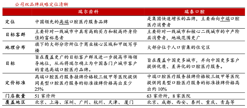 經(jīng)典案例:根據(jù)華西證券等綜合資訊表明,2012年,瑞爾公司推出子公司“瑞泰口腔”,雙品牌戰(zhàn)略著眼于差異化的價(jià)值主張,為來(lái)自于不同區(qū)域與經(jīng)濟(jì)背景的患者提供周到、明確、獨(dú)特的口腔醫(yī)療服務(wù)。在雙品牌戰(zhàn)略推動(dòng)下,公司迅速布局全國(guó)擴(kuò)張計(jì)劃,并快速擴(kuò)大了患者客群,獲取了兼具豐富性與多樣性的診療范例。