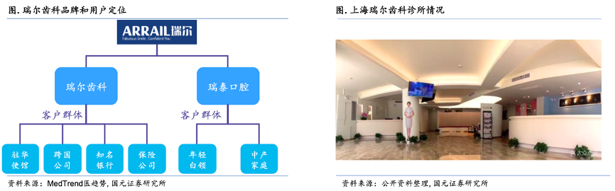 經(jīng)典案例:根據(jù)MedTrend醫(yī)趨勢、公開資料整理、國元證券研究所等綜合資訊表明,瑞爾齒科每個診所都具有全科和??漆t(yī)生,平均配置10把牙椅、8名醫(yī)生、10名護(hù)士。服務(wù)品質(zhì)高端化的同時,也使得單個門診的投資成本、運(yùn)營成本較高。2012年后,瑞爾集團(tuán)拓寬了瑞泰品牌,服務(wù)定位年輕白領(lǐng)和中產(chǎn)家庭,實(shí)現(xiàn)品牌渠道下沉。