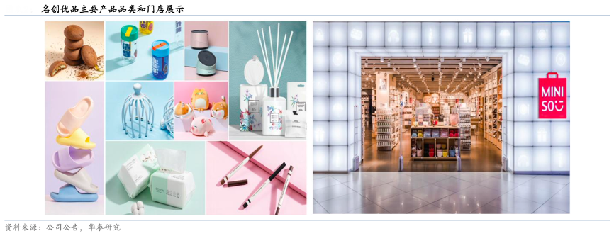 經(jīng)典案例:根據(jù)公司公告、華泰研究等綜合資訊表明,名創(chuàng)優(yōu)品面向消費(fèi)者提供 11 大類生活日用品,涵蓋生活家居、小型電子產(chǎn)品、紡織品、包袋配飾、 美妝工具、玩具、彩妝、個人護(hù)理、零食、香水、文具和禮品,其中大部分為自有品牌產(chǎn)品。FY2022-FY2023(公司財(cái)政年度以 630 為限),名創(chuàng)優(yōu)品品牌每月平均推出 530 個SKU, 為消費(fèi)者提供超過 9,700 個核心 SKU(連續(xù) 12 個月的累計(jì)銷售額超過 10 萬元)產(chǎn)品。