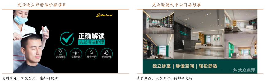 經(jīng)典案例:根據(jù)百度圖片、大眾點評、德邦研究所等綜合資訊表明,史云遜依賴于雍禾醫(yī)療積攢的會員體系進(jìn)行發(fā)展,前期以給植發(fā)患者做增值服務(wù)為主,以店中店形式進(jìn)行推廣,隨著養(yǎng)發(fā)人群擴(kuò)充、養(yǎng)發(fā)意識提升,后續(xù)史云遜將以獨立店模式進(jìn)行擴(kuò)展,由點及面形成一個城市“1-2 家植發(fā)機(jī)構(gòu)+N 家史云遜”模式。