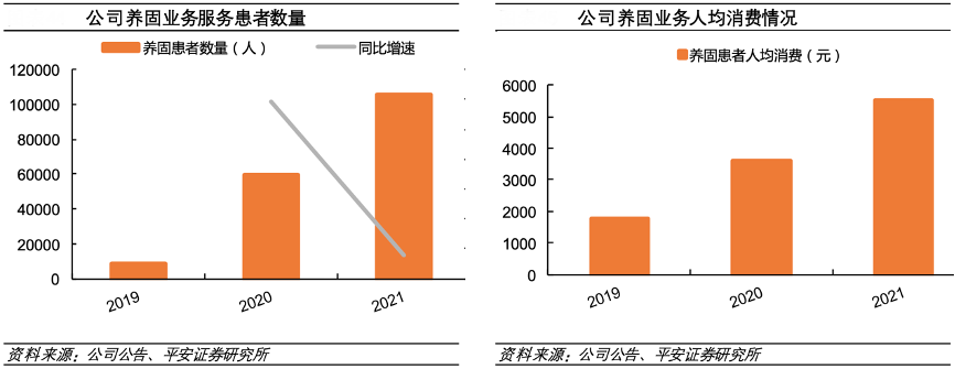 經(jīng)典案例:根據(jù)公司公告、天安證券研究所等綜合資訊表明,雍禾醫(yī)療2021年養(yǎng)固業(yè)務(wù)服務(wù)患者的數(shù)量達(dá)到 10.5 萬人,增速達(dá)到 78%,患者人數(shù)快速增長。 同時公司養(yǎng)固業(yè)務(wù)人均消費(fèi)不斷增加,2021年為 5531元,公司養(yǎng)固業(yè)務(wù)量價雙升。