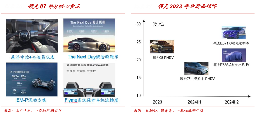 經(jīng)典案例:根據(jù)吉利汽車(chē)、懂車(chē)帝、乘聯(lián)會(huì)、中泰證券研究所等綜合資訊表明,領(lǐng)克 07 與 08 同平臺(tái),繼續(xù)采用 EM-P 架構(gòu)、Flyme Auto 車(chē)機(jī)系統(tǒng),一改吉利前 期車(chē)機(jī)系統(tǒng)不夠流暢的痛點(diǎn)。
