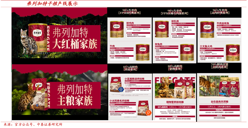 經(jīng)典案例:根據(jù)官方公眾號(hào)、中泰證券研究所等綜合資訊表明,弗列加特秉承開(kāi)發(fā)少量、創(chuàng)新、精致、差異化的產(chǎn)品模式塑造品牌的高端形象。弗列加特每次推出的新產(chǎn)品、新口味都具有創(chuàng)新性和針對(duì)性。如近期新推出的小藍(lán)盾系列旨在改善貓咪腸道健康,緩解軟便和口臭的問(wèn)題。