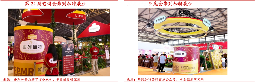 經(jīng)典案例:根據(jù)弗列加特品牌官方公眾號(hào)、中泰證券研究所等綜合資訊表明,乖寶寵物公司在“它博會(huì)”“亞寵會(huì)”等知名寵物展覽中為弗列加特品牌建立獨(dú)立展臺(tái)。為了強(qiáng)化產(chǎn)品的專(zhuān)業(yè)度,弗列加特在展會(huì)上安排研發(fā)人員詳細(xì)為用戶(hù)介紹產(chǎn)品營(yíng)養(yǎng)成分、制作工藝以及相關(guān)技術(shù)專(zhuān)利,不斷強(qiáng)化自身高端貓糧的品牌定位。