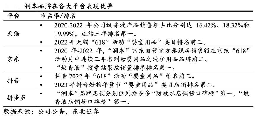 經(jīng)典案例:根據(jù)公司官網(wǎng)、東北證券等綜合資訊表明,潤本股份公司目前旗下僅有“潤本”品牌,“潤”寓意 潤澤和呵護,“本”寓意本源和人生本初,品牌在嬰童護理和精油產(chǎn)品系列均強調天然草本植物提取液,塑造安全、溫和以及天然的品牌形象,深度貼合消費者對嬰童用品和個護產(chǎn)品的訴求。