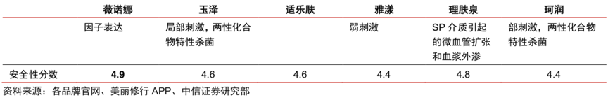 經(jīng)典案例:根據(jù)各品牌官網(wǎng)、美麗修行APP、中信證券研究部等綜合資訊表明,相比國外競品品牌的“神泉水”、“活泉水”概念(理膚泉、雅漾等),薇諾娜主打的 “草本”概念,更貼合中國文化,因而更容易被國人接受。由于薇諾娜的舒敏修護產(chǎn)品以天然成分為主,不添加防腐劑,產(chǎn)品安全性能相對同類競品更加突出。