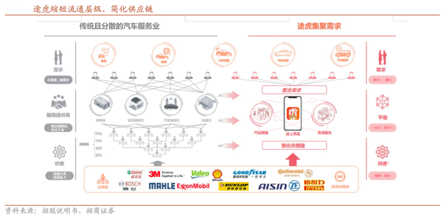 經(jīng)典案例:根據(jù)途虎官方公眾號、招商證券等綜合資訊表明,途虎基于先發(fā)及規(guī)模優(yōu)勢逐步成為國內(nèi)及國際暢銷品牌的首選和最大業(yè)務(wù)合作伙伴,與眾多供應(yīng)商(包括汽配零件和設(shè)備的品牌制造商和批發(fā)商)建立了穩(wěn)定的合作關(guān)系,尤其在輪胎、機油等細分市場,途虎作為全國最大的零售商,成為諸多頭部品牌制造商難以替代的銷售渠道以及新品首發(fā)平臺。