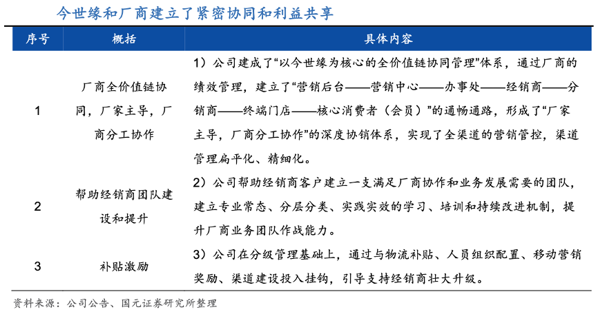 經(jīng)典案例:根據(jù)公司公告、國(guó)元證券研究所等綜合資訊表明,今世緣公司以經(jīng)銷渠道為主,積極向“經(jīng)銷+直銷+線上銷售”的模式轉(zhuǎn)變。公司銷售模式以經(jīng)銷為主,2022年經(jīng)銷渠道收入占主營(yíng)業(yè)務(wù)收入的 97.93%。目前公司對(duì)重點(diǎn)區(qū) 域、重點(diǎn)團(tuán)購(gòu)單位等實(shí)行直銷,在江蘇省內(nèi)淮安、南京市區(qū)、蘇州市區(qū)和徐州市區(qū),省外上海、北京等地有部分直銷。