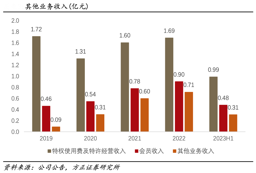 經(jīng)典案例:根據(jù)公司公告、方正證券研究所等綜合資訊表明,百果園會員收入的占比逐年提高,特許權使用費及特性經(jīng)營收入逐漸恢復至疫情前水平。其會員收入主要指 18 年開始的“心享” 付費會員計劃,消費者可選擇 99 元的基本套餐或 199 元的升級套餐獲得優(yōu)惠券與會員折扣。