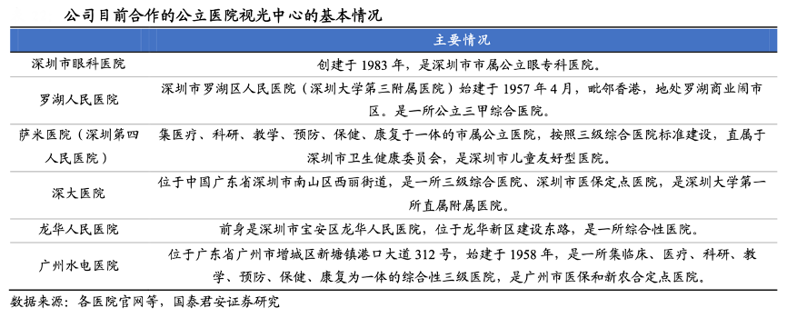 經(jīng)典案例:根據(jù)各醫(yī)院官網(wǎng)、國泰君安研究等綜合資訊表明,博士眼鏡公司已同深圳市羅湖區(qū)人民醫(yī)院、深圳大學(xué)總醫(yī)院及深圳市大鵬新區(qū)葵涌人民醫(yī)院等開展視光相關(guān)項目合作,并與深圳市羅湖醫(yī)院集團(tuán)建立戰(zhàn)略合作,探索門店、社康中心、醫(yī)院的三位一體眼健康服務(wù)模式。