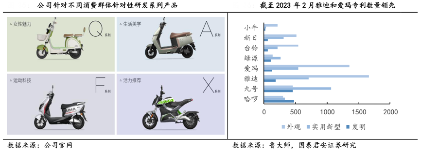 經(jīng)典案例:根據(jù)公司官網(wǎng)、國(guó)泰君安證券研究等綜合資訊表明,2015年愛瑪科技公司出口 國(guó)際市場(chǎng)并獲得歐盟認(rèn)證,2021年在 A 股上市,2022 年全年銷量突破 1000 萬輛,并于 2023 年登上《乘風(fēng) 2023》等熱門綜藝。公司緊緊圍繞“用戶至上、卓越產(chǎn)品、精耕市場(chǎng)、精細(xì)運(yùn)營(yíng)”的戰(zhàn)略主軸和向數(shù)智化科技公司轉(zhuǎn)型的戰(zhàn)略方向,持續(xù)專注于電動(dòng)兩輪車研發(fā)與生產(chǎn)。