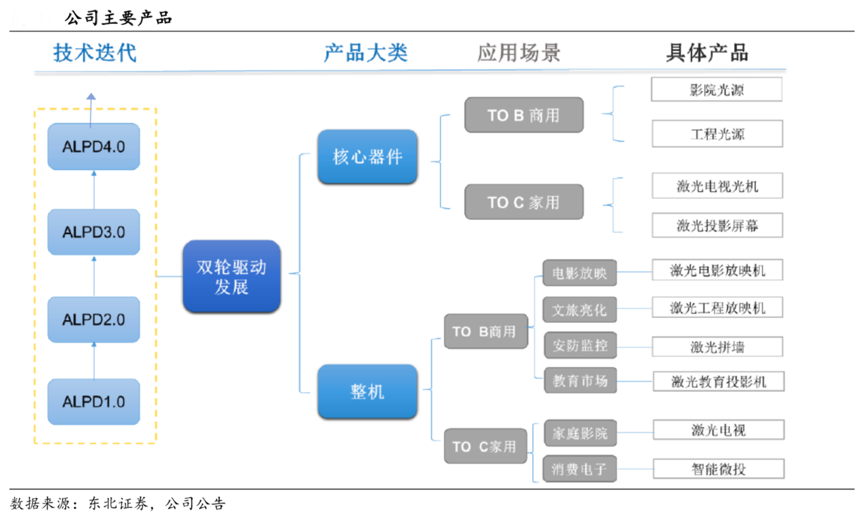 經(jīng)典案例:根據(jù)東北證券、公司公告等綜合資訊表明,光峰科技是一家擁有原創(chuàng)技術(shù)、核心專利、核心器件研發(fā)制造能力的全球領(lǐng)先激光顯示科技企業(yè)。其于 2007 年首創(chuàng)可商業(yè)化的基于藍(lán)色激光的熒光激光顯示技術(shù),解決了激光顯示的產(chǎn)業(yè)化難題,同時(shí)圍繞該技術(shù)架構(gòu)布局底層關(guān)鍵專利,并為該技術(shù)注冊(cè) ALPD®商標(biāo)。在激光顯示領(lǐng)域,其申請(qǐng)專利超過 1450 項(xiàng),占據(jù)了全球激光顯示技術(shù)的制高點(diǎn)。