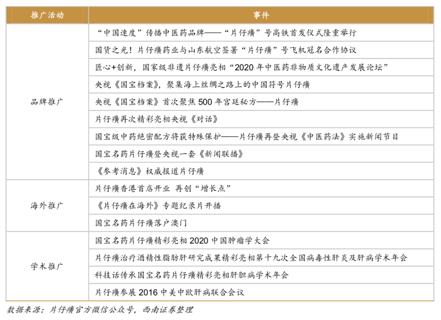 經(jīng)典案例:根據(jù)公司公告、片仔癀官方微信公眾號、西南證券等綜合資訊表明,片仔癀公司近年來加大對品牌的宣傳,從歷史文化傳承、品牌推廣、海外推廣和學(xué)術(shù)推廣方面擴(kuò)大影響力。編寫《片仔癀治療肝癌臨床研 究成果發(fā)布》等學(xué)術(shù)宣傳文章,用科學(xué)數(shù)據(jù)闡述片仔癀功效,通過知名門戶網(wǎng)站和媒體宣傳 平臺二次發(fā)酵,提升了市場對片仔癀功效的認(rèn)可與信賴。到2020 年片仔癀的品牌價(jià)值達(dá)到 357 億元,同比增長 159%,在醫(yī)療保健品牌中排名第 1。