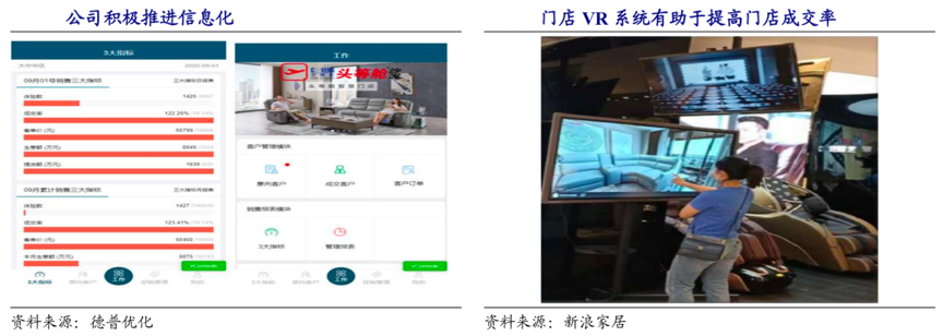 經(jīng)典案例:根據(jù)德普優(yōu)化、新浪家居等綜合資訊表明,敏華控股公司近年積極在門店推行 CRM 系統(tǒng)和 VR 系統(tǒng)。其經(jīng)銷商通過 CRM 系統(tǒng)可以實時分析門店有效體驗數(shù)、轉(zhuǎn)化率和客單價這三個指標,從而經(jīng)銷商可以有針對性地提升門店經(jīng)營效率。VR 系統(tǒng)則方便消費者根據(jù)自家戶型和裝修風(fēng)格,電子化立體展示沙發(fā)購買效果,促進消費者購買,從而提高客流有效轉(zhuǎn)化率。
