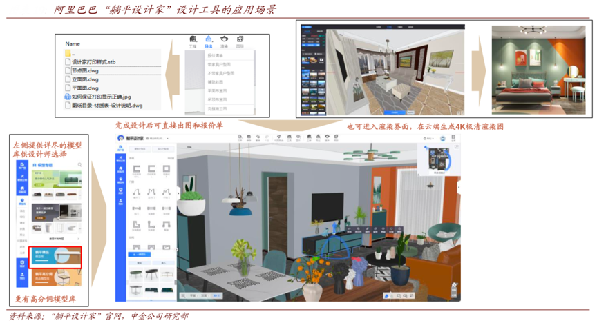 經(jīng)典案例:根據(jù)“躺平設(shè)計家”官網(wǎng)、中金公司研究部等綜合資訊表明,2019 年 9 月,阿里巴巴 5 億元戰(zhàn)略投資三維家,由三維家賦能“躺平”平臺。阿里巴巴“躺平”平臺的目標(biāo)是為品牌提供更加優(yōu)秀的制造能力和營銷能力、讓品牌的設(shè)計成為由設(shè)計師和消費者驅(qū)動的 C2M 式設(shè)計。于設(shè)計師,“躺平”希望為設(shè)計師提供優(yōu)秀的設(shè)計工具、免費的渲染服務(wù)、成熟的分傭體系和完整的供應(yīng)鏈。設(shè)計師將能夠在“躺平”的設(shè)計后臺 看到制造商的工藝能力,保證設(shè)計可以直接成為產(chǎn)品,“所見即所得”。