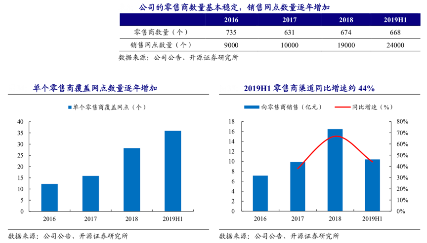 經(jīng)典案例:根據(jù)公司公告、開(kāi)源證券研究所等綜合資訊表明,飛鶴直接向如母嬰專 賣(mài)店、超市及大型超市銷(xiāo)售產(chǎn)品,其向 668 家零售商出售產(chǎn)品,覆蓋超過(guò) 2 萬(wàn)個(gè)銷(xiāo)售點(diǎn)。其合作的零售商數(shù)量逐年減少,自 2016 年的 735 家降至 2019H1 的 668 家,但零售商質(zhì)量增強(qiáng),平均單個(gè)零售商覆蓋網(wǎng)點(diǎn)數(shù)量自 2016 年的 12 家增至 2019H1 的36 家。