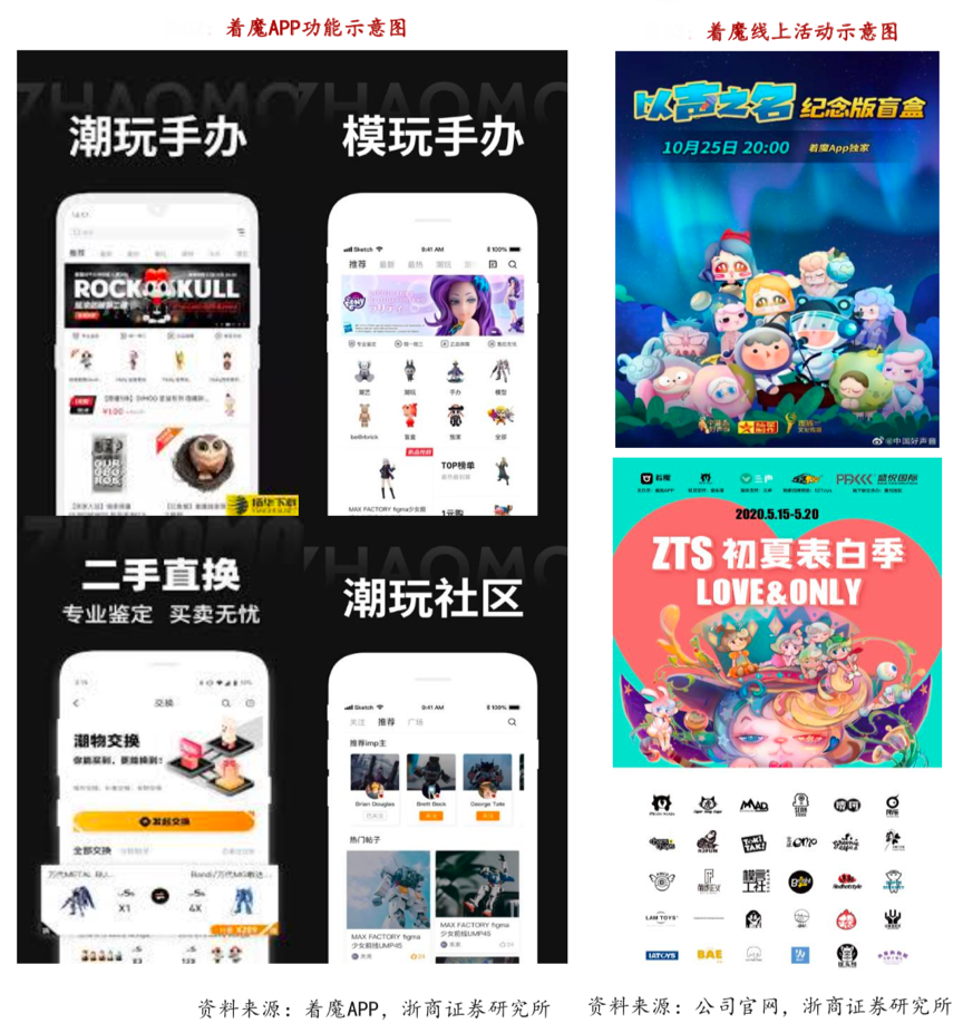 經(jīng)典案例:根據(jù)著魔APP、浙商證券研究、公司官網(wǎng)等綜合資訊表明,2020年3月,泡泡瑪特主辦“ZTS潮流玩具大賞”線上展;2020年其集結(jié)潮玩圈7家 頂級IP,與中國好聲音聯(lián)合推出限定紀念版潮玩盲盒-《SING!CHINA》,在著魔 小程序/APP獨家限量發(fā)售。
